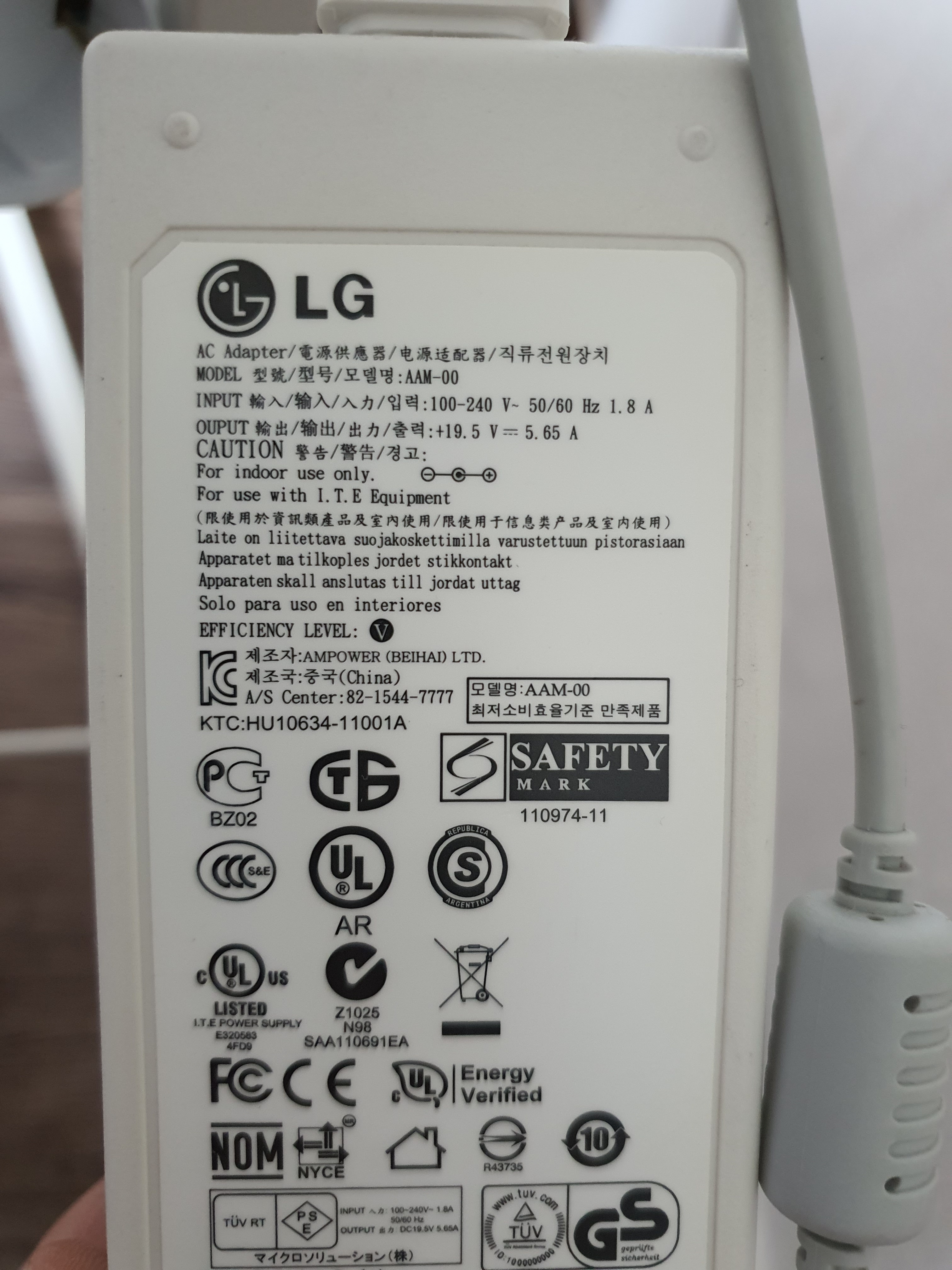 사용된 아답터 (19.5V - 5.65A) 약 110W 출력용 아답터.