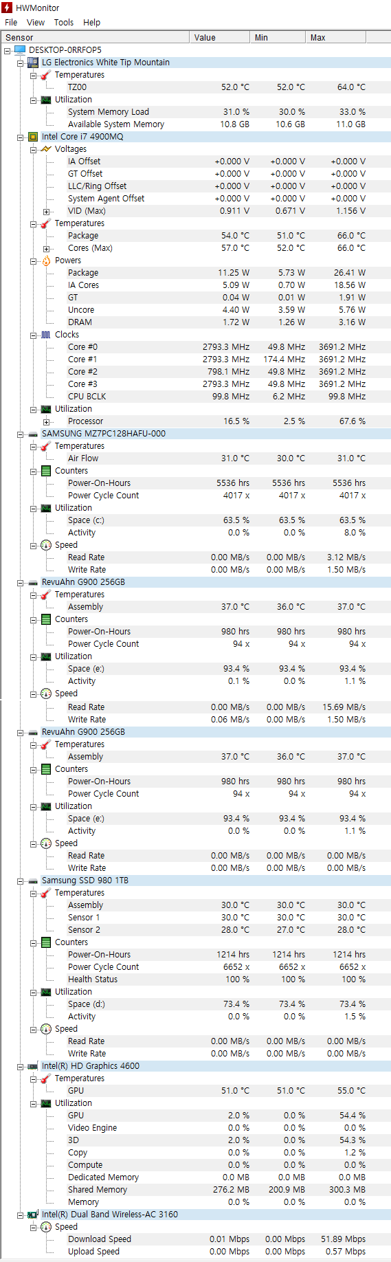 CPU : 팬티엄 3550M ---> i7-4900MQ