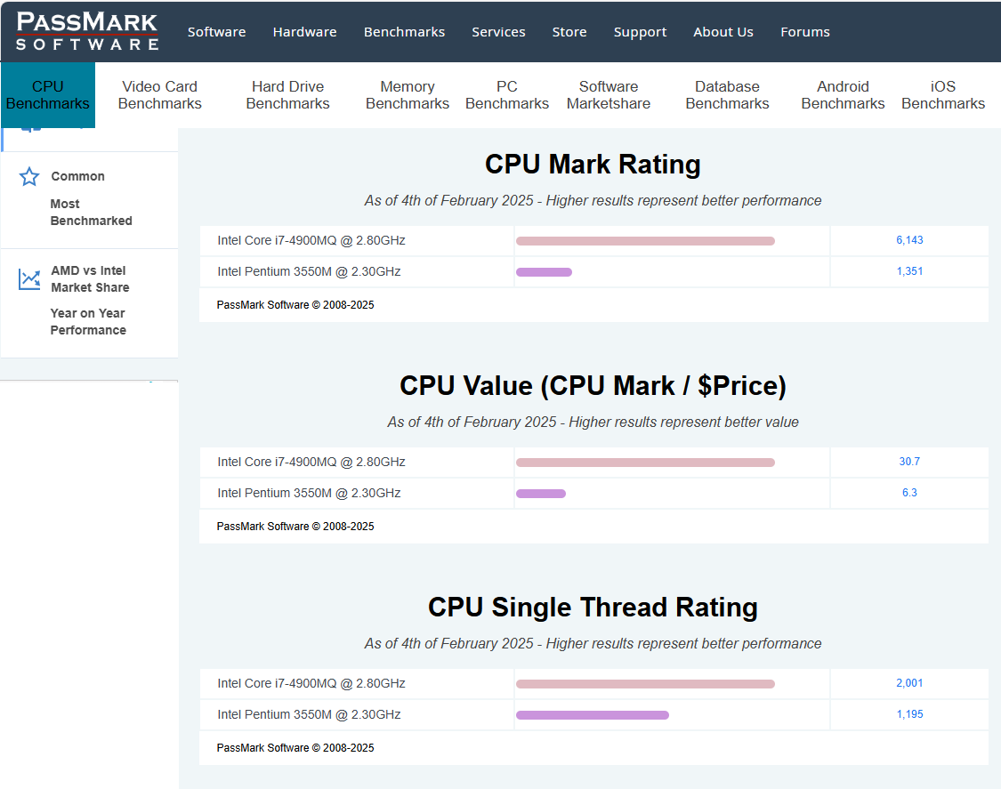 CPU Mark 점수 1351 ---> 6143 으로 성능이 약 78% 올라감.